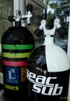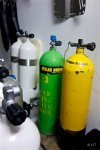 Υπήρχαν βέβαια και φιάλες αλουμινίου. Θυμάμαι η technisub έβγαζε φιάλες αλουμινίου και διπλές και μονές από τότε, technisub Aralu ήταν τα μοντέλα, αλλά αν και αλουμίνιο ήταν επίσης ασήκωτες. Είχαν κόκκινα αυτοκόλλητα και τεράστιο όγκο, η μονή ήταν 1.8 κυβικά και οι διπλές 3.6 κυβικά. Η μονή είχε και πολύ βαρύ κλείστρο. Όταν άδειαζε και την πέταγες στο νερό επέπλεε με τον πάτο. Είχα αγοράσει ένα σετ διπλές από τον Καρτελιά που είχε την αντιπροσωπεία της technisub, τις κουβάλησα και νόμιζα ότι είχα εξωλέμβια στην πλάτη μου, τόσο βάρος είχαν. Έκανα μία κατάδυση και τις πούλησα.