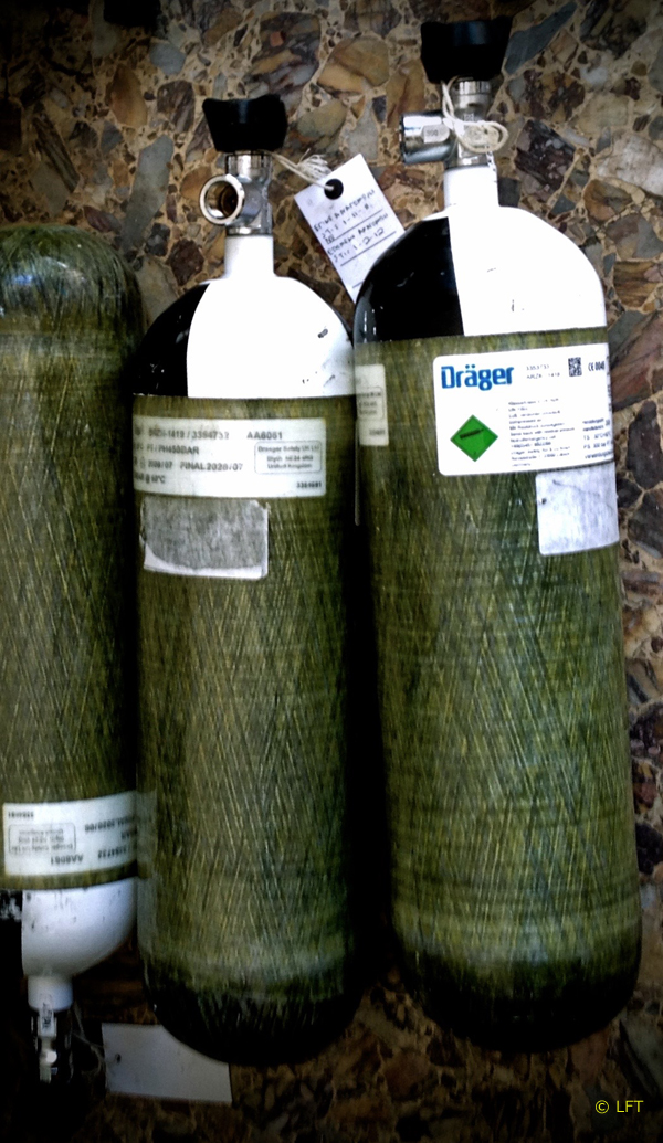 Δ.Α.: Οφείλεται κατά κύριο λόγο στη συντήρηση του κομπρεσσέρ. Εγώ το φροντίζω σχολαστικά. Όταν κάποια στιγμή το έλεγξε ο Γερμανός μηχανικός της Bauer, με ρώτησε αν φροντίζω τη γυναίκα μου έτσι. Του απάντησα ότι η γυναίκα μου δεν μου φέρνει λεφτά, ενώ το κομπρεσσέρ μου φέρνει! Κάνω λοιπόν τακτικά σέρβις με χρήση πάντα γνήσιων ανταλλακτικών. Βάζω τα original φίλτρα και τα γνήσια λάδια και γι’ αυτό το κομπρεσσέρ είναι σε καινουργή κατάσταση και ο αέρας άψογος. Σου έδειξα φιάλες 10 ετών που γεμίζουν αποκλειστικά από εμένα και βλέπεις ότι εσωτερικά βρίσκονται σε άριστη κατάσταση και την άλλη φιάλη των 20 ετών που είναι μέσα καθρέφτης.